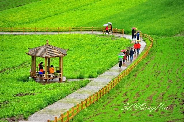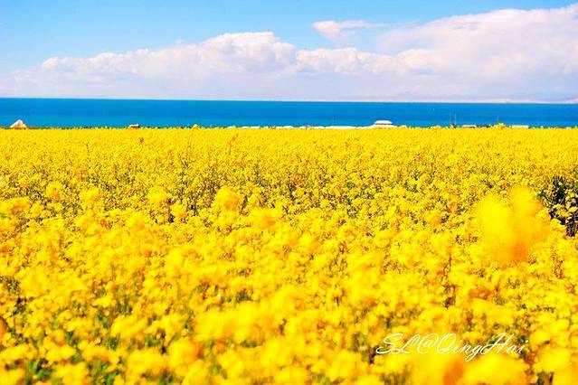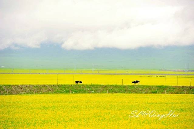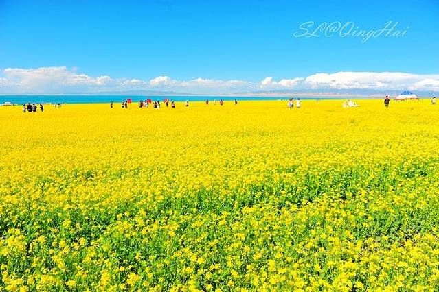 从盐湖出来,一路向着西宁方向前进,青海湖碧蓝的水面就在身旁,路旁一簇簇的油菜花也开的正当好,这种美景值得人们前来观赏。