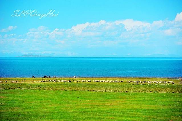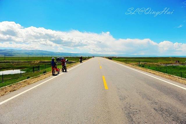 刚察到黑马河大约有100多公里的距离,行不多久,便来到青海湖边,沿着青海湖看车真的是一种享受,在前一天享受了门源、祁连的美景,但看到青海湖碧蓝的湖边,真的是有种想在这里发呆的冲动,虽然也看过了不少湖和海,但青海湖的景色绝对是独一无二的,也怪不得引来很多人在这里骑行,连天白云下,这里真的是天堂。