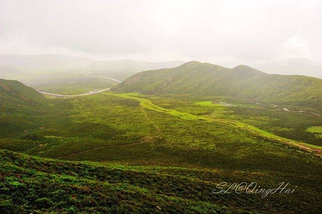 经过一番沟通和处理,大约10点左右才取到车,准备开始这段意外的旅程。从西宁到门源一路下雨,周围的山也都弥漫在烟雨中,开了几个小时,刚准备迎接第一个观景台,达坂山观景台时,但一到达才发现从山上看下去,真是一片雾蒙蒙的,根本没有看到油菜花的踪迹。虽有些失望,但这也就是旅行吧,无论天晴或者阴雨,眼前的一切都是最好的安排。