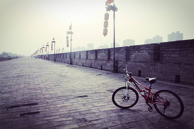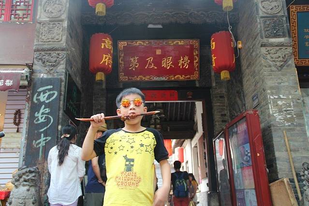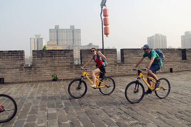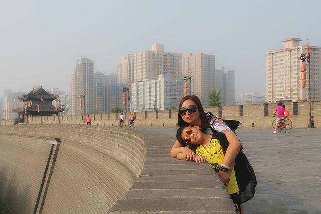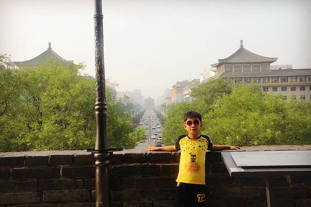 之后在回民街吃了点小吃,穿过钟鼓楼,就带孩子一起去古城墙骑自行车去了。