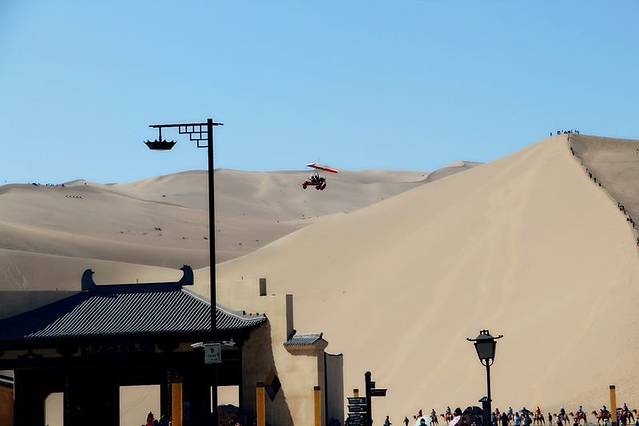 远处的滑翔机像只沙漠雄鹰向我们扑来……