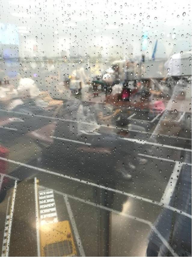 到了机场开始下雨,然后航空管制机场的大部分航班都延误了,等了快两小时才走……