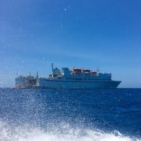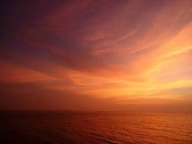 不知不觉就到了晚上,吃晚饭的时候已经很多人开始吐了,我喝了点粥吃了点水果,就跑去甲板吹风了。月亮很大很圆,水面上没有其他一丝光,混着机油味儿的海风迎面扑来,正式行程终于开始了