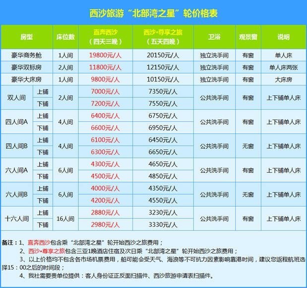 北部湾之星4天3晚邮轮,我18号考完,邮轮19号下午开,非常完美,一天时间也不浪费。邮轮上有很多舱位,价格都是包括了食宿的根据评价和设施我挑了最便宜、性价比也最高的16人间(说白了还是因为穷)。