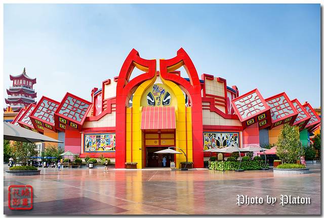 实景建造的牌坊和酒馆一展仿古风格,亭台楼阁多种戏台,真人介绍。该项目融合中国各民族各地区戏剧曲艺。以乘坐自动寻迹无轨车的方式绕园而行,观看以实景景观、各种高科技模拟戏曲环境、先进手段模拟名角唱法相结合的戏曲表演,欣赏南腔北调、才子佳人!