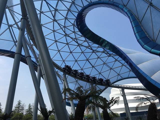 9点一过我们马上冲向地平线,果然早到是有好处的,我们又跑得快,第一批进去几乎没怎么排队就玩了飞跃地平线,视觉效果赞到爆。等我们出来,外面已经排了超级无敌长的队了。