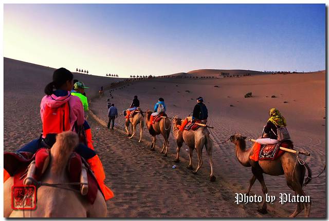 骑上骆驼,向鸣沙山前进