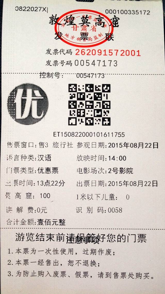莫高窟参观券