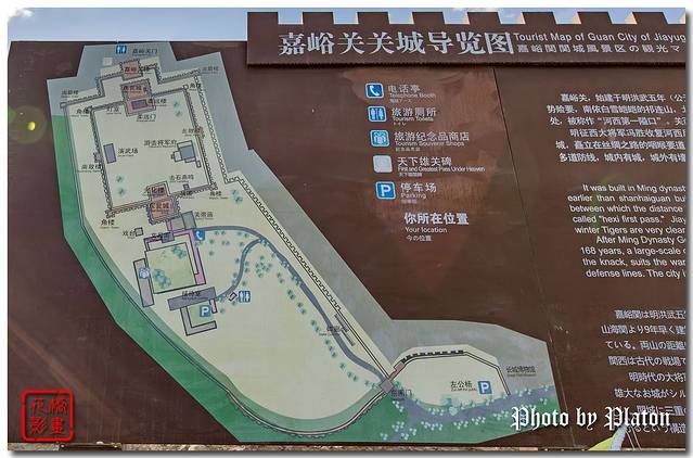 嘉峪关关城在嘉峪关市区西南6公里处,位于嘉峪关最狭窄的山谷中部,地势最高的嘉峪山上,城关两翼的城墙横穿沙漠戈壁,向北8公里连黑山悬壁长城,向南7公里,接天下第一墩,是明代万里长城西端主宰,自古为河西第一隘口。