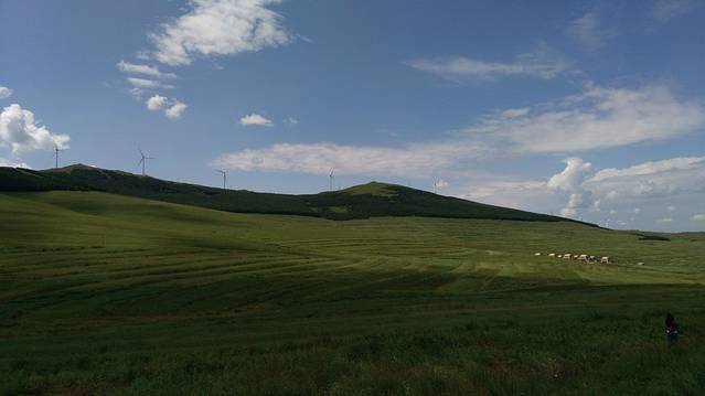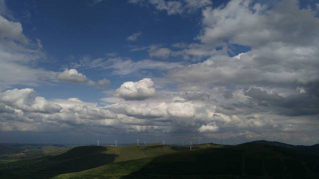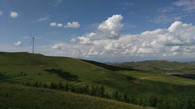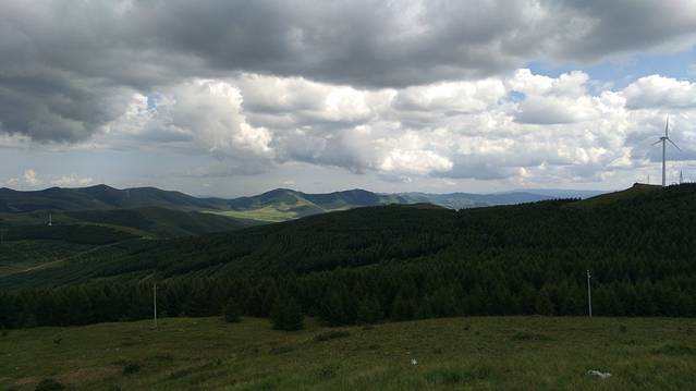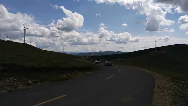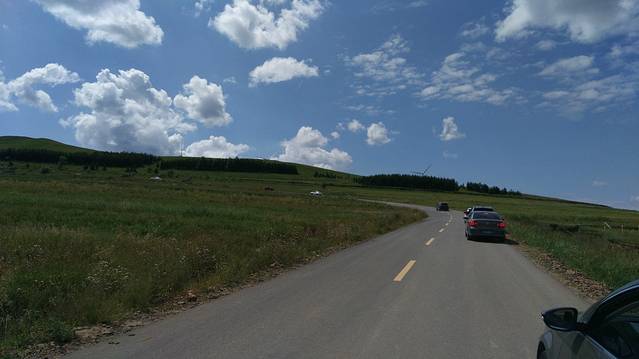 12:00走S242到草原天路桦皮岭入口进入(按照餐馆老板所指的路线),30多公里的路程,13:00—17:00草原天路游玩行驶近120公里,领略了草原的蓝天、白云、起伏的山峦、风力发电的风车、塞北梯田及大草原等美景,野狐岭入口驶出,听从了网友的建议在天路中由桦皮岭进入,东向西逆向行驶,基本没遇见堵车,而从野狐岭进入,由西向东行驶车多,多路段单向拥堵,给游玩出行带来了不便。