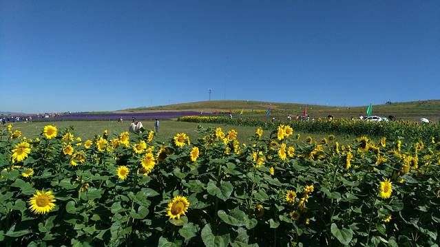 景区外的向日葵、薰衣草与一望无际的草场