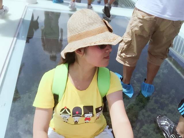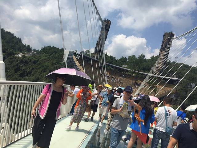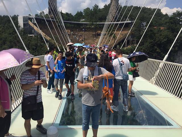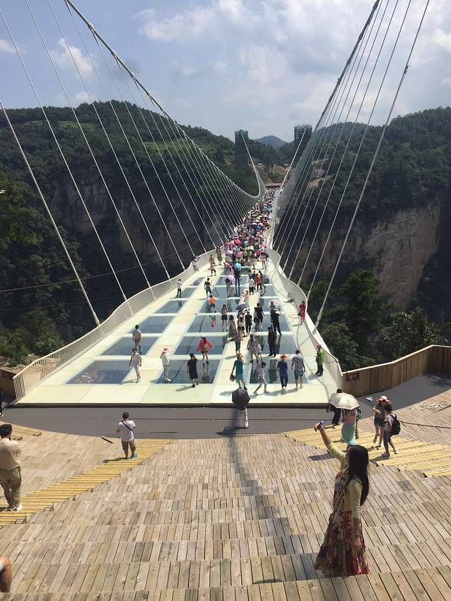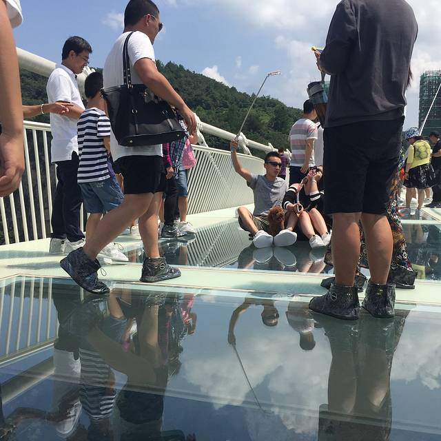 终于踏上玻璃桥,37度的高温,但是大家都不怕晒,也不嫌脏了。那天保洁绝对很高兴,因为大家或坐或躺,擦得贼干净!!!