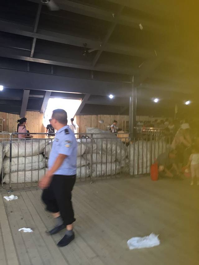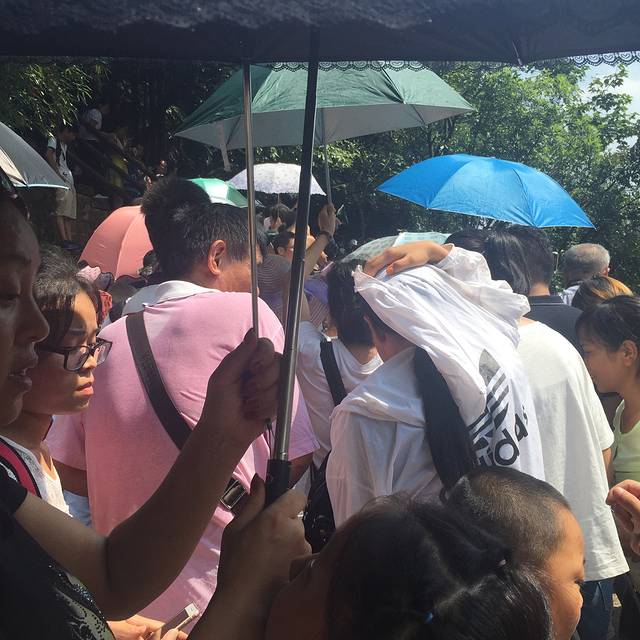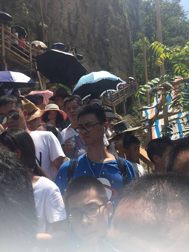 大部分旅行团、散客都在此时下桥,大家集中在一起,本来在39度的高温下,队伍一直停滞不前,再加上有很多抱小孩的家长,小孩晒得哇哇哭,游客更加烦躁,咒骂、埋怨此起彼伏。我亲眼看到一个不到2岁的小孩,被晒得一直呕吐,他妈妈心疼的一直哭,小孩爸爸一直吆喝让前面的队伍快一点,可这哪是吆喝就能解决的问题呀。