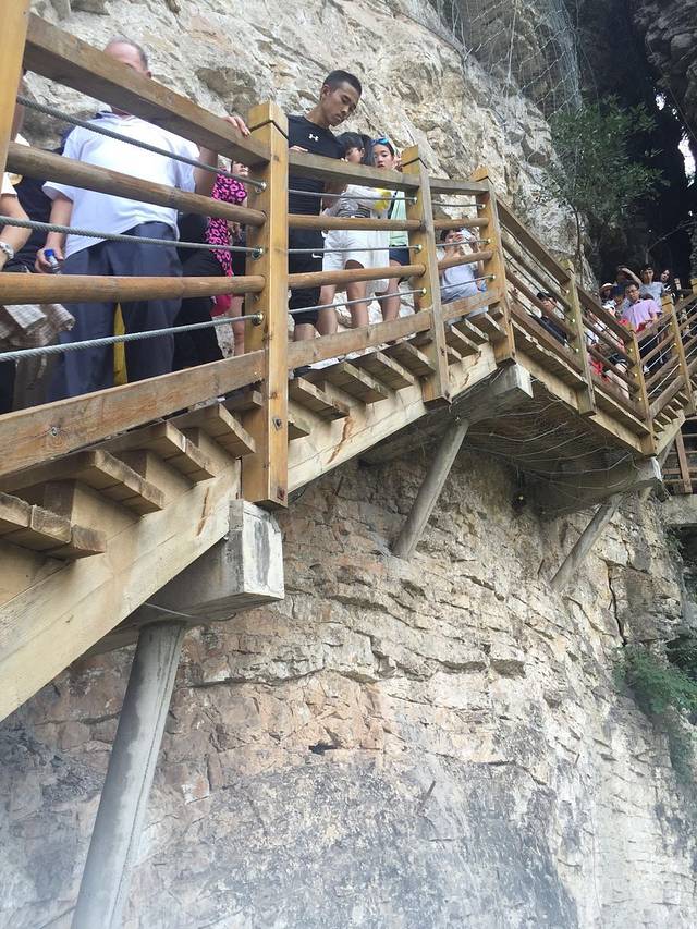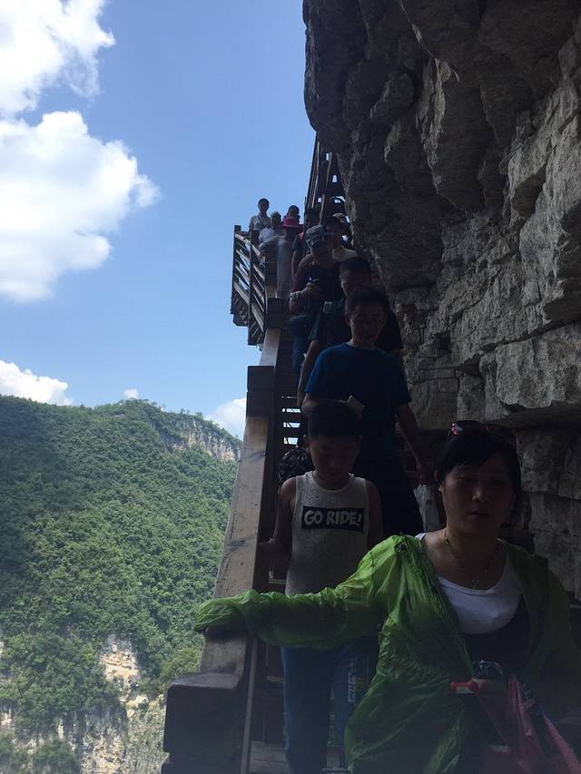 下了桥,继续排队检票,然后就是天悬栈道。此时已经到11点。我一直以为最痛苦的是在排队检票处,后来以为是领鞋套的地方,以为上了桥一切就结束,但是噩梦此时才开始。