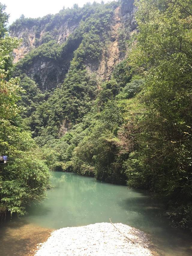 从武陵源汽车站有直达张家界大峡谷的班车,可能因为第一天营业,所以快到大峡谷时,非常拥堵,有大约5公里时,就提示“大峡谷今日门票售罄”,并且一路交警执勤,此时才早上8点。同时道路很窄,并行两辆中巴公交车都嫌挤,如果是旅行团的大巴,肯定堵车,我们就愣是在导航提醒还剩下2.1公里的地方堵了一个小时,最后干脆下车步行,走到入口时,已经10点多了。所以在此建议,除非提前到达,定了附近的住宿,否则真心不建议自驾来,要不,半路车都没地方扔。同行的中巴车上的人因为家里带的有老人,没有选择步行,据说,10点钟时,在车上还没看到大峡谷的招牌。