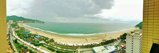 这是我用三脚架把相机固定好从阳台探出去拍的侧海景……