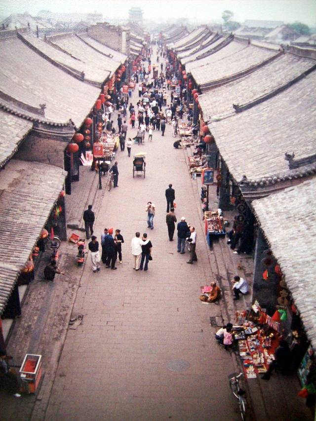 次日花一整天骑自行车(10元1天)游览全城的每个角落,但很多主要建筑包括市楼、日升昌票号、古城墙、清虚观、文庙、县衙门、镖局、城隍庙等要购买85元套票,我为省钱和因同类古建筑也看过不少了,故放弃进入。其实偌大的古城本身就是一个大博物馆,到处都是可供欣赏的文物古迹,如要细细品味,那就足够你看一整天的了。品尝了街头小吃,最有名当属“莜面栲栳栳”了(8元/笼),是用山西的“莜面”擀成面皮再卷成一个个小卷密密地排满在竹蒸笼里蒸熟而成的面食,再沾着陈醋与酱油吃,但口味并不适合我。我觉得另外一种叫“碗脱则”的小吃反而还不错(2元/碗),是用杂粮粉调成糊、分别盛在一个个小碗内蒸熟而成的面糕,放凉后切成条状再拌着陈醋与酱油、辣酱吃,酸辣开胃,很像西北凉粉的口感。