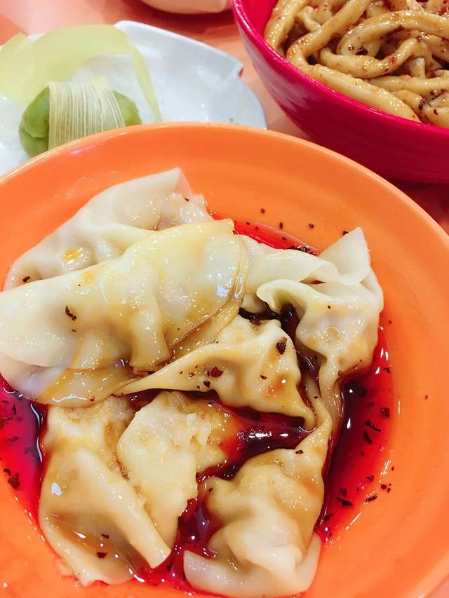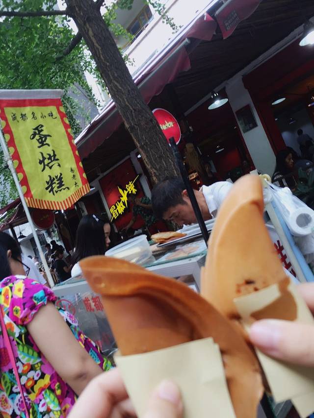 到达成都已经一点半了,这时候我俩都有点饿,想了一下昨天坐公交的时候看见龙抄手总店了,看了下位置就在春熙路附近,于是坐上地铁我们就奔着龙抄手去了,到的时候已经2点了,天哪2点了居然还有那么多人排队,真是不能理解。。不过队伍进行的比较快,大概排了20分钟就到我们了,点了一份钟水饺,一份炖鸡抄手,一份叶儿粑,一份甜水面。上菜速度还可以,这里的蛋烘糕就要卖的相对贵一些了,钟水饺是甜辣的,很好吃,甜水面也是甜辣的,面很粗很劲道,他俩的区别是钟水饺是热的,甜水面是凉的。抄手简直不要太好吃啊,非常建议点炖鸡抄手。叶儿粑。。很奇怪,就是糍粑但是里面的馅是肉馅,可以尝试,但是不太合我俩的胃口。