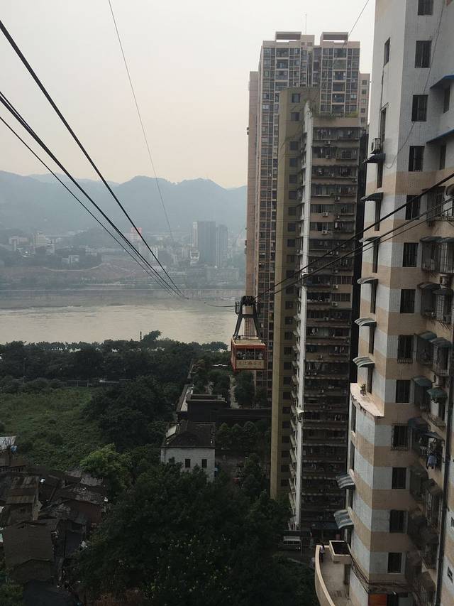 解放碑到长江索道很近,爬个坡就到了,但是这个坡也太陡了。。我算是知道为什么重庆女生身材都那么好了,天天做有氧运动哎。到了长江索道之后买票进入,凑巧我们是第一个,可以先进去选好的位置,第一次我们选到了正面带窗口那里,可以直观的看到缆车往下走的全貌。就是风有点大,过长江的时候还心想要不要扔块石头下去~因为票买的是往返的,所以我们又坐回来了,这次选到了两遍窗口的位置,好好地看了看长江。