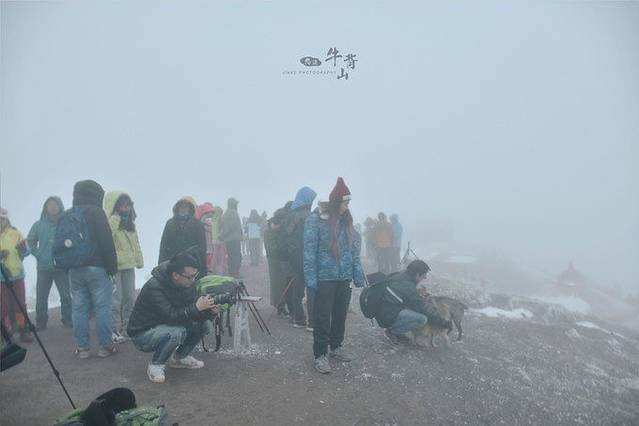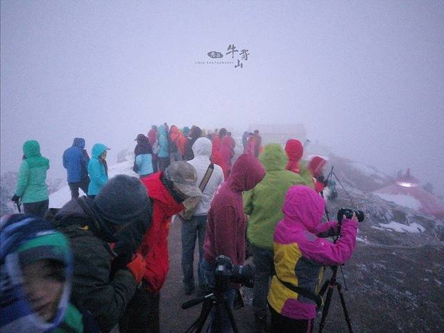 从天黑一直等到天亮,最开始山顶只有几个人,后来人逐渐多起来,周围依然笼罩着大雾,看来大家和我一样虽然不抱太大的期望,但还是希望能出现奇迹,默默的在山顶冰霜寒风中等待着。