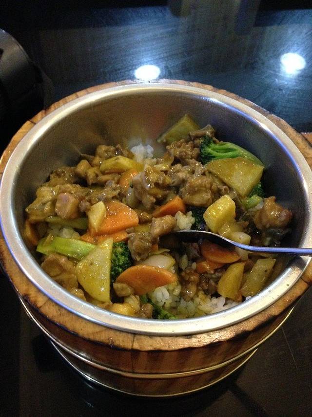 人民路这家叫饭桶的餐馆生意很不错,点了一份咖啡鸡味道很正,值得推荐!