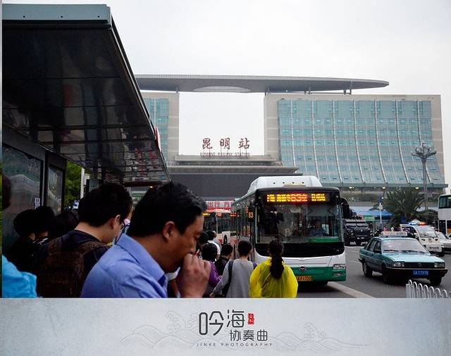 火车站出站后不远,在这里坐直达滇池的双层公交车44路,起点站一直座坐到终点站,价格好像是1元吧,50分钟左右就到了!