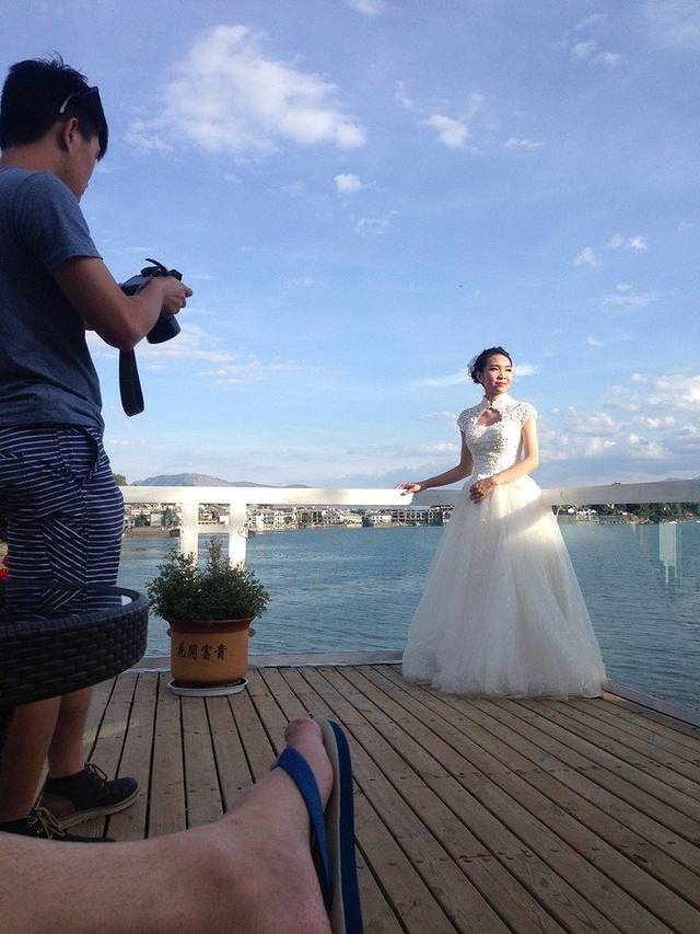 刚休息不久,就看见一对广东的新人在这里拍婚纱照,的确这个位置拍摄视野很广,出片后效果应该很不错,也算休息中的小插曲!