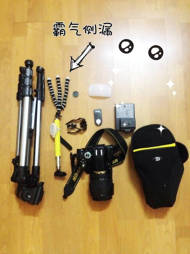 各种自拍神器、尼康D5100相机、18-140镜头、还有三角架和柔光罩~~~~~~~~