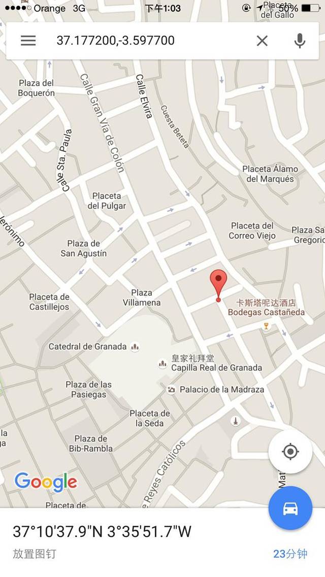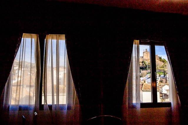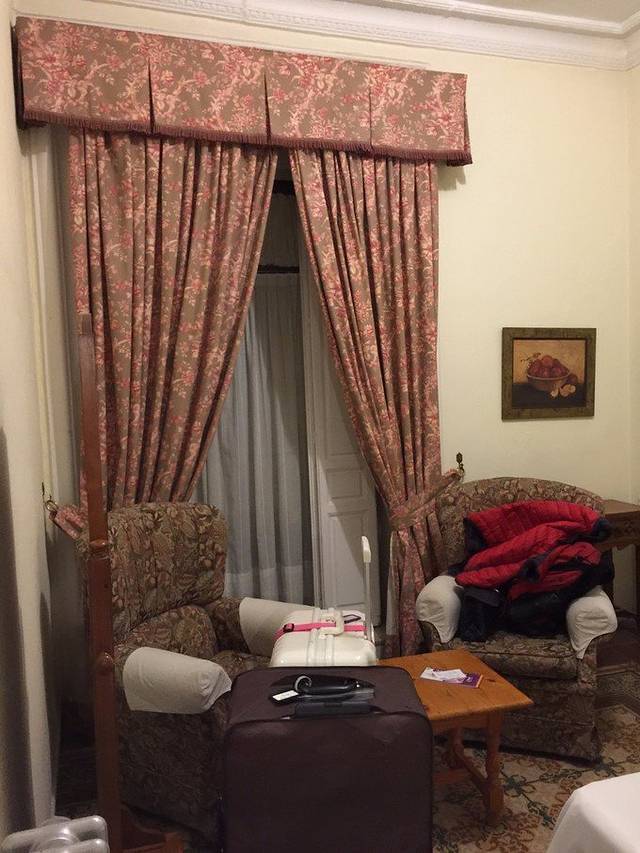 格拉纳达只住了27日一晚,酒店是:Hotel Inglaterra(英拉特拉酒店),双人间65欧,booking评分8.5。虽然只住了一晚,但是此行最喜欢的酒店。房间很大,设施齐全干净整洁。地点非常好,所在巷子走出来就是格拉纳达大教堂和礼拜堂,酒店旁边全都是餐厅。最棒的是,我们的房间正对着山上的阿尔罕布卡宫,拉开窗帘就能看到。要说唯一的缺点,就是电梯只到三楼,由于我们住在五楼,最后两层要自己爬楼梯上去,搬行李略不方便,但和它的优点比,这点不便显得微不足道了。