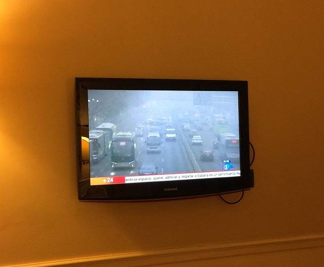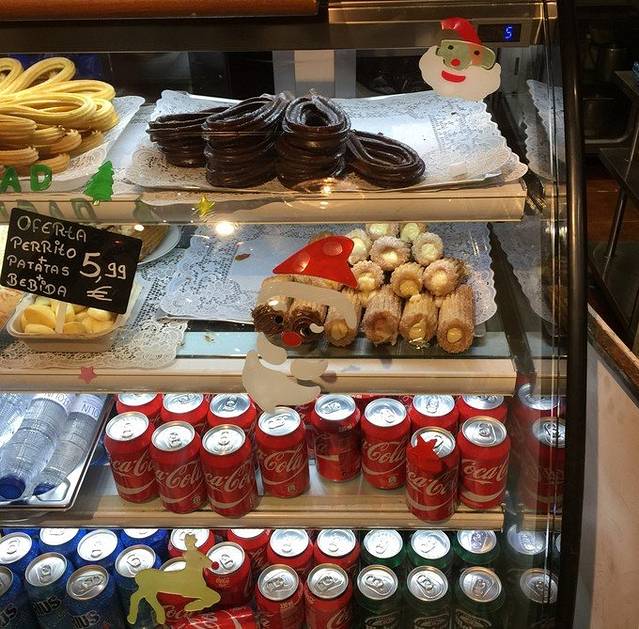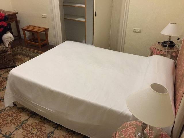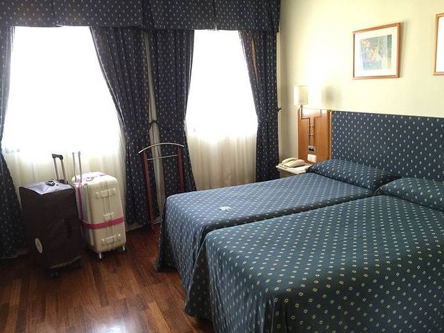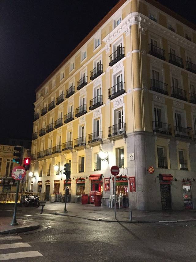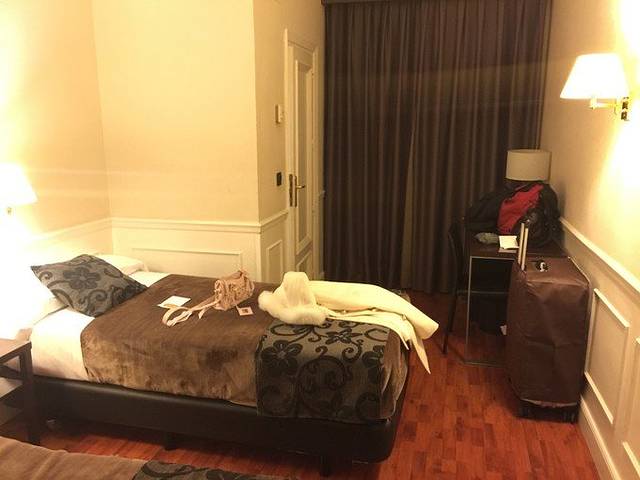 马德里住了12月24日-12月26日三晚, 酒店是:Hotel Cortezo(库特佐梅迭姆酒店),3晚双人间一共220欧,booking评分8。酒店位置在马德里市中心的太阳门广场南边一点,紧挨着一个小广场,距离太阳门广场大概几百米,步行约5分钟。坐地铁或者吃饭逛街都十分方便,酒店周围又没有太阳门那么杂乱,相对安静。因为早上7点就到了,酒店入住时间是12点,前台说有一件空闲的两张单人床房间可以马上入住,为了能尽快休息一下我们就答应了。缺点就是房间有点小,单人床也小,老公各种嫌弃。。当然要比日本香港的大些,所以我是知足的。