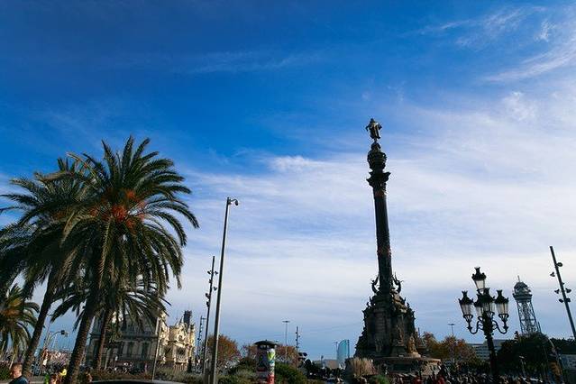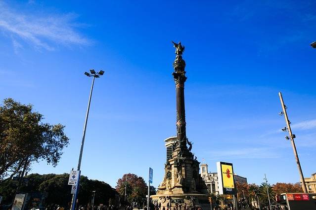 走到兰布拉大街尽头,就能看到矗立在街心的哥伦布纪念碑,这附近就是地铁L3线Drassanes站。