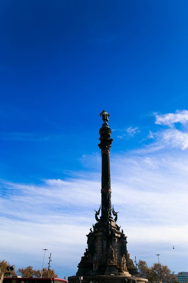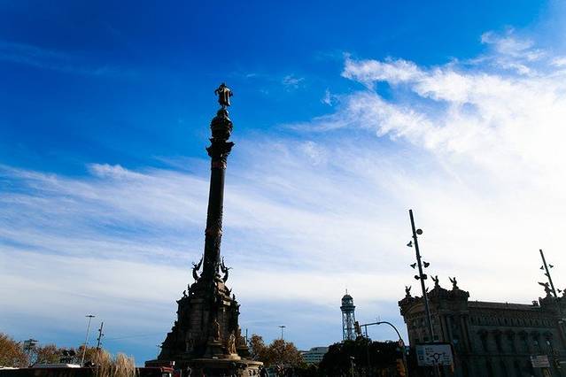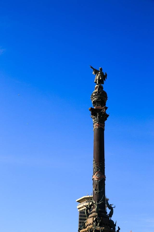 这座纪念碑高60米。纪念1492年哥伦布第一次从美洲探险凯旋归来。巴塞罗那是第一个听到哥伦布正式宣布发现新大陆和描绘奇异新世界的地方。环绕柱体中部雕有五个凌空飞舞的女神,底座四周雕有八只巨大的黑狮,还有记载哥伦布航海事迹的碑文和当时资助他远征的国王费迪南德和王后的雕塑。圆柱顶端的哥伦布全身立像由蒙杰伊克城堡前的大炮熔化后铸铁制成,是世界上最大的哥伦布塑像,呈现出哥伦布凝神远望、右臂指向前方海洋的姿态。瞭望塔位置的选择也很有意义,这里是兰布拉大街的终点,也是游览港口区的起点,象征着市中心和海港的相连。