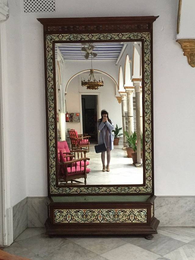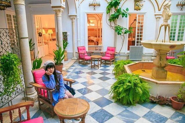 塞维利亚28号29号两晚,Hotel Simon(西蒙酒店)双人间110欧两晚,booking评分8.2。酒店位置就位于圣十字区,塞维利亚大教堂的旁边。整个酒店装修很有安达卢西亚风情,非常古朴,我很喜欢这种风格。房间内部设施比较简单,不算太大,有点民宿的感觉,这点不如其他几个酒店。