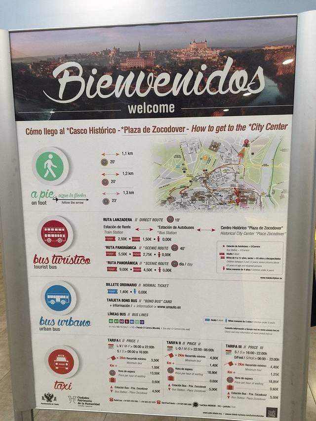 1 马德里往返托莱多:大巴往返是10.8/欧,车程50分钟左右,返程票记得选择open票,这样什么时候玩好了再走,无需确认离开时间。车次很多,整点和半点都有。托莱多汽车站要比火车站离古城近。乘坐火车的信息:往返票是20.6欧/人,Atocha火车站出发,用时半小时。