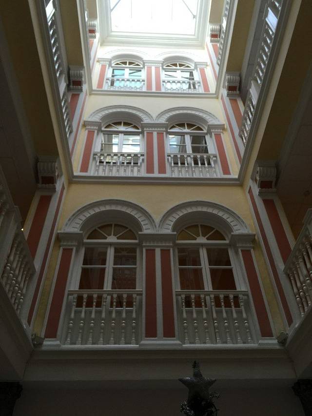 一楼天井,乍一看平淡无奇,但仔细观察发现阳台设计,墙壁颜色等全都不同寻常。