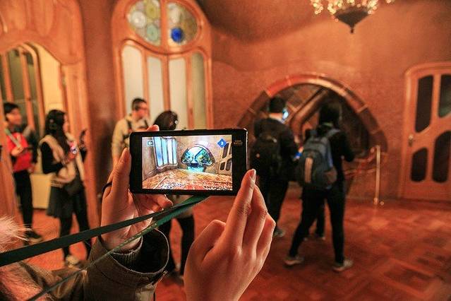 语音解说同时具有3D眼镜功效,按解说提示观看,可以看到巴特洛之家以前的面貌以及一些有趣的动画演示,全方位的给我们展示了高迪的这座童话住宅。