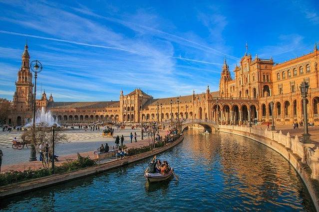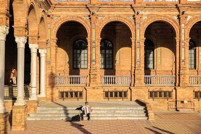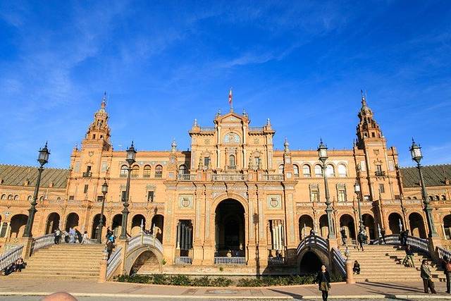 傍晚的塞维利亚西班牙广场