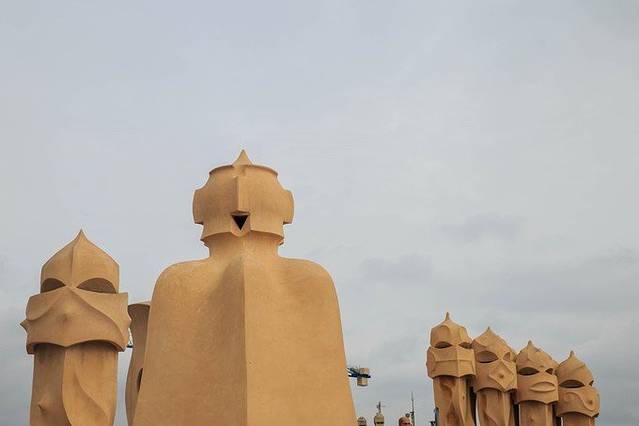 之后便排队乘坐电梯登上屋顶,米拉之家最有特色的部分。外星人一样奇异形状的烟囱,让我们赞叹高迪的创意和想象力。