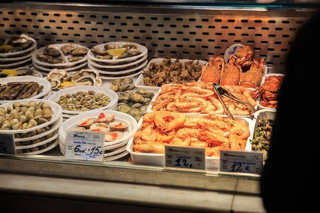 市场里有很多吃新鲜海鲜的摊位,价格都不算贵,很想尝试但每家人都非常多,只好作罢。