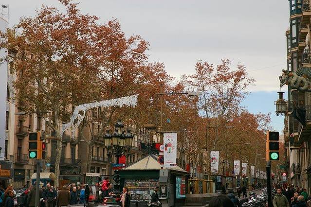 白天,这里是街头艺术和美食的天堂(著名的La Boqueria波盖利亚市场就坐落街边),午夜钟声敲响之后,这里便成为了巴塞罗那夜生活的游乐场(特别是西边的Raval区,各色主题小酒馆林立)。与我想象的拥挤嘈杂的兰布拉不同,真实的兰布拉大道非常宽阔,两边行车中间步行。