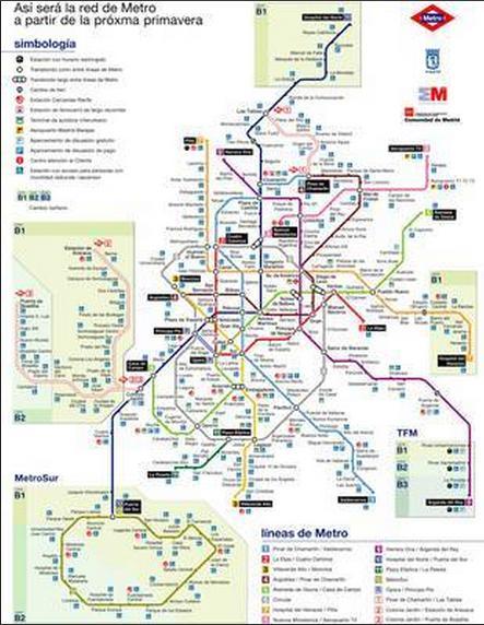 简单介绍一下马德里的交通系统,游玩马德里主要以步行和地铁为主,大部分著名景点就在市中心区域,完全可以步行游览。地铁单次票1.5欧起,两人以上的话,推荐买地铁10次票12.2欧,可多人共用,一个人刷完进去,递给下一个人就行。马德里还有多个汽车和火车站,前往其它城市需要从不同车站出发,具体信息我会在当日游记中详细介绍。这是马德里的地铁线路图,不是很清晰看个大概吧,清晰的线路图可以在我前面推荐的APP里看到。