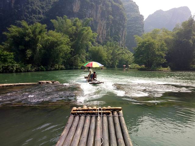 8遇龙河可以多漂一段时间,风景很美,人工的筏也比较有情调,漓江漂流不好玩,太吵了,而且贵