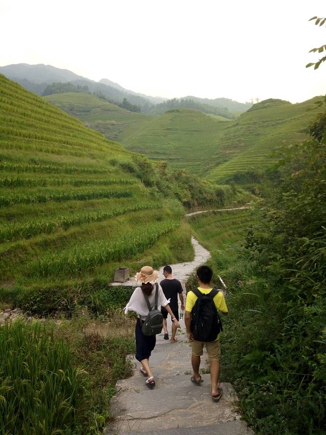 网上定了专线车,45一个人到龙脊梯田,在桂林站对面酒店门口上车。到景区售票点2.5小时,会有人上车收门票钱,学生证终于派上用场了,便宜了一半47,原价95。到山上停车场又花了半个小时。