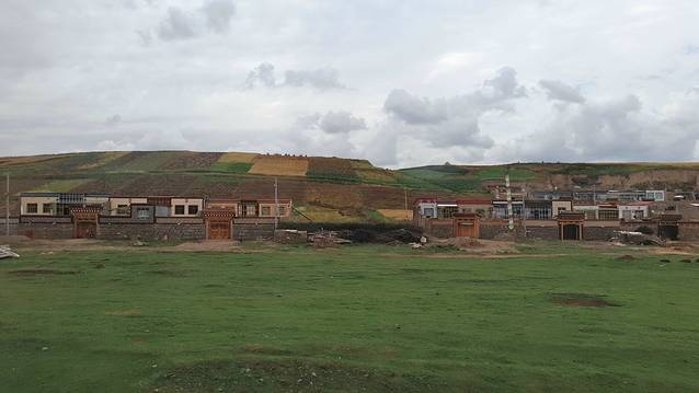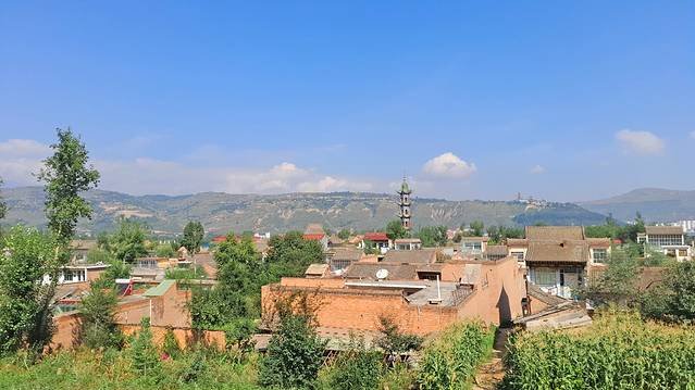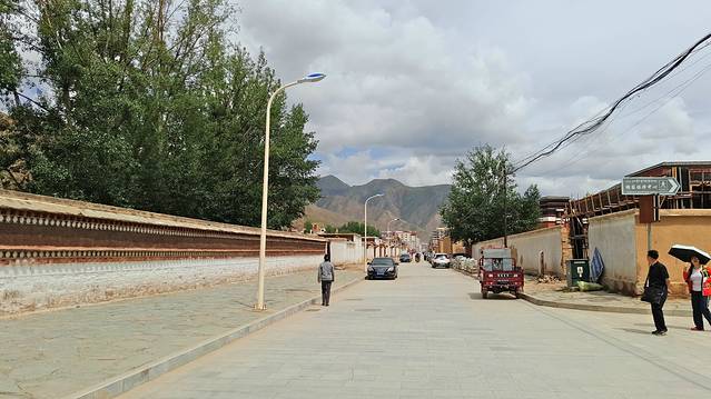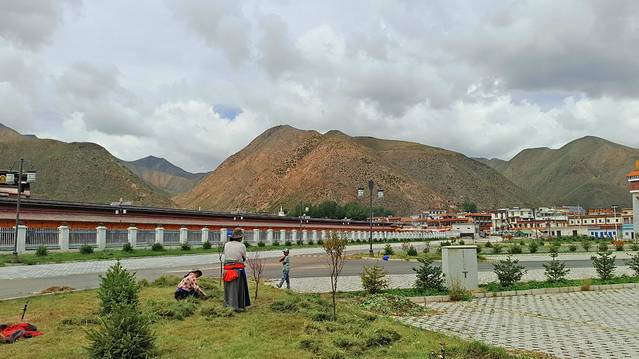 中间夹着回族的清真寺,两个藏传佛教的寺庙在这里隔“江”相望。