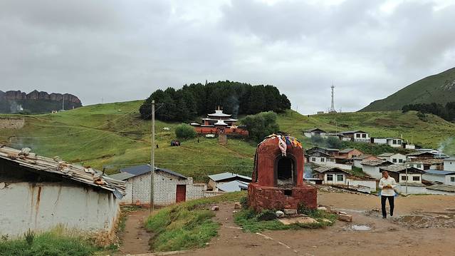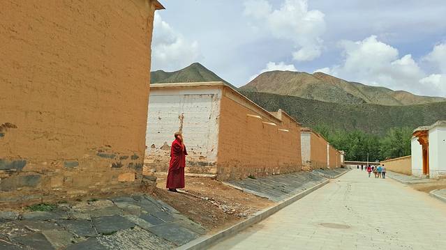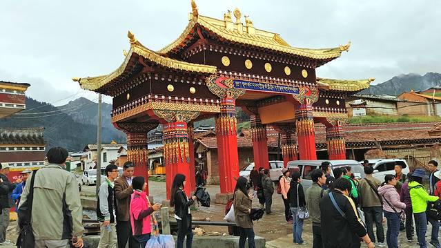 进入小镇,一路上到处都是身穿僧袍的师傅。这里是郎木寺的标志建筑吧。
