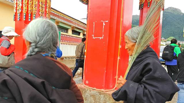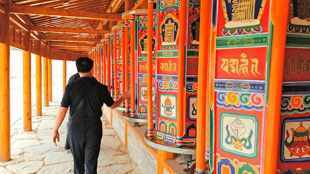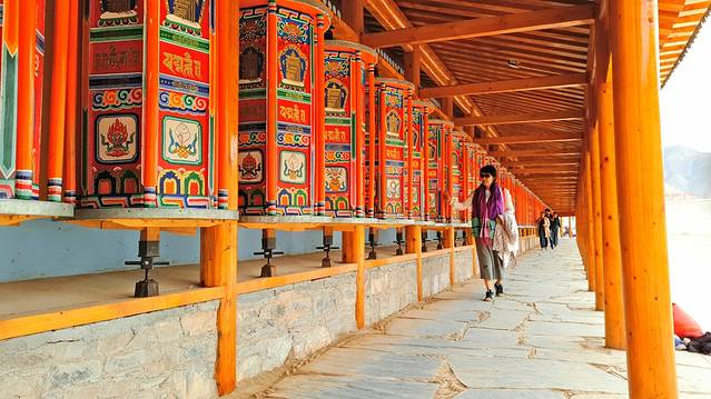转经廊请务必顺时针拨动;必须从左往右绕行,苯教寺院相反应逆时针。