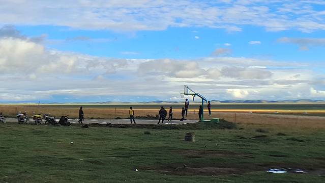 在海拔3400米的高原,居然看到了这个篮球场,而且还有好几个小伙子在忘情地打篮球。