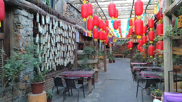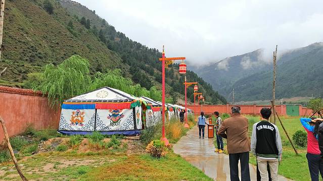 这里的风格是藏式的,向右拐,是一排的帐篷-雅间。