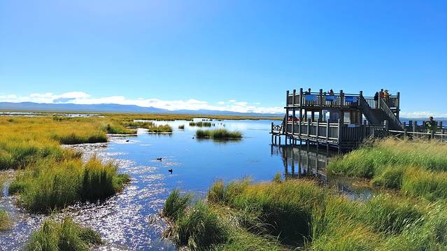 花湖因水中开满花朵而得名,这里是中国最大最平坦的湿地草原,花湖四周数百亩水草地就是“高原湿地生物多样性自然保护区”——被喻为“地球的肾”,保护区以黑颈鹤为主,可以走上浮桥,陶醉在湖水和鲜花的美景中,与水鸟嬉戏,寻找黑颈鹤的足迹。