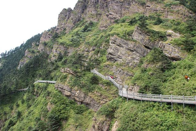 9点早餐,街边小店里点的米粉,10元/人,味道不错,就是有点辣,随后开车去神农顶景区,路上携程定成人票255/人,现场凭学生证购买学生票135/人。取票很方便,直接在售票窗口就可以。进入景区时要按指纹,幸亏这样,后来孩子的票不小心丢了,在大九湖用另一张一起买的票证明,就可以直接免费补张票。九座以下的客车允许进入景区,我们开车游玩神农顶,景色宜人,天公也做美,阴天,没有太阳,否则不知道要热成什么样儿呢。